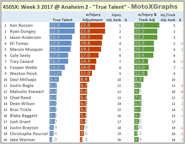 Chad Reed checks in at #11 after the Track Adjustment, and I'm sure I'll get some disagreement there.  In fact, I disagree a little bit, as my gut says he's closer to 7th than 11th, but the numbers don't like the expected effect of aging for him -- and they've been about right so far in 2017.