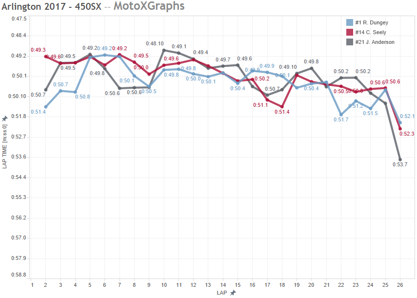 Seely quietly cruised into 2nd, with a race where he outrode 3rd place finisher Jason Anderson and generally was faster than Dungey: