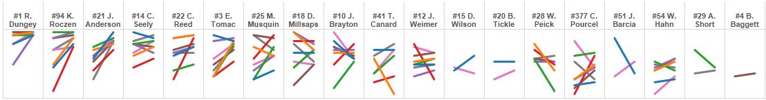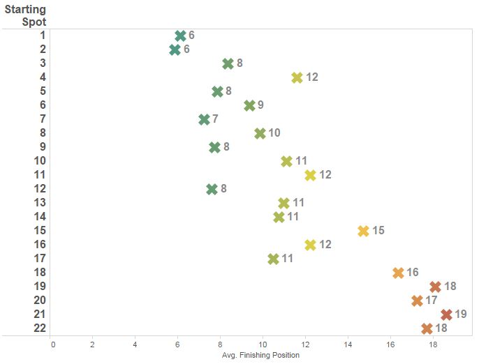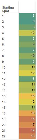 Here we see the effect of the relatively small data set, in that a few starting spots vary wildly from the others -- 4th did much