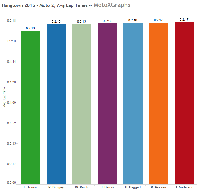 And one more for good measure, where in a bar you can see Tomac's average lap time vs the other top riders -- small difference amongst themselves, BIG difference with Tomac: