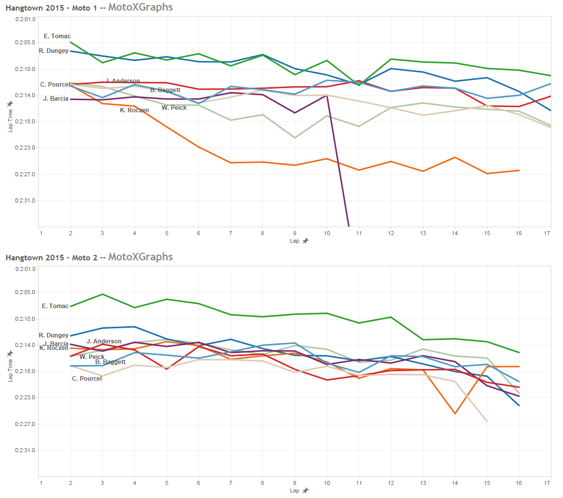 So there's Tomac's 2015 Hangtown in graphs. Maybe at some point we can check recent history (or beyond) for a similar racer where one guy blew away the field similar to how Tomac did.